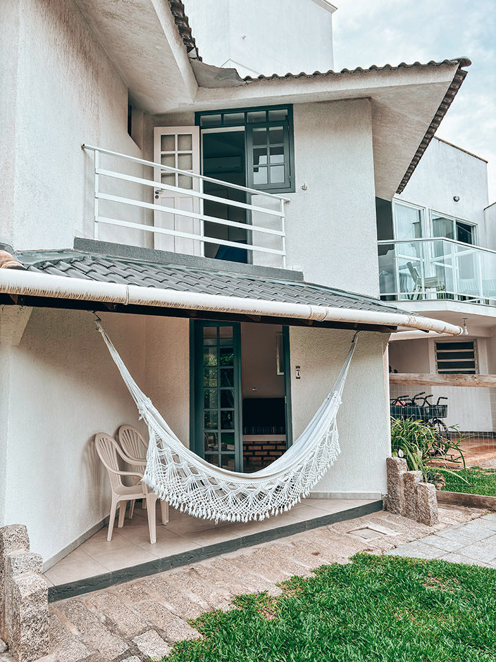 Residencial Corsário - Sobrado 7 - Frente do sobrado com cadeiras e rede para descansar e aproveitar o barulho do mar.